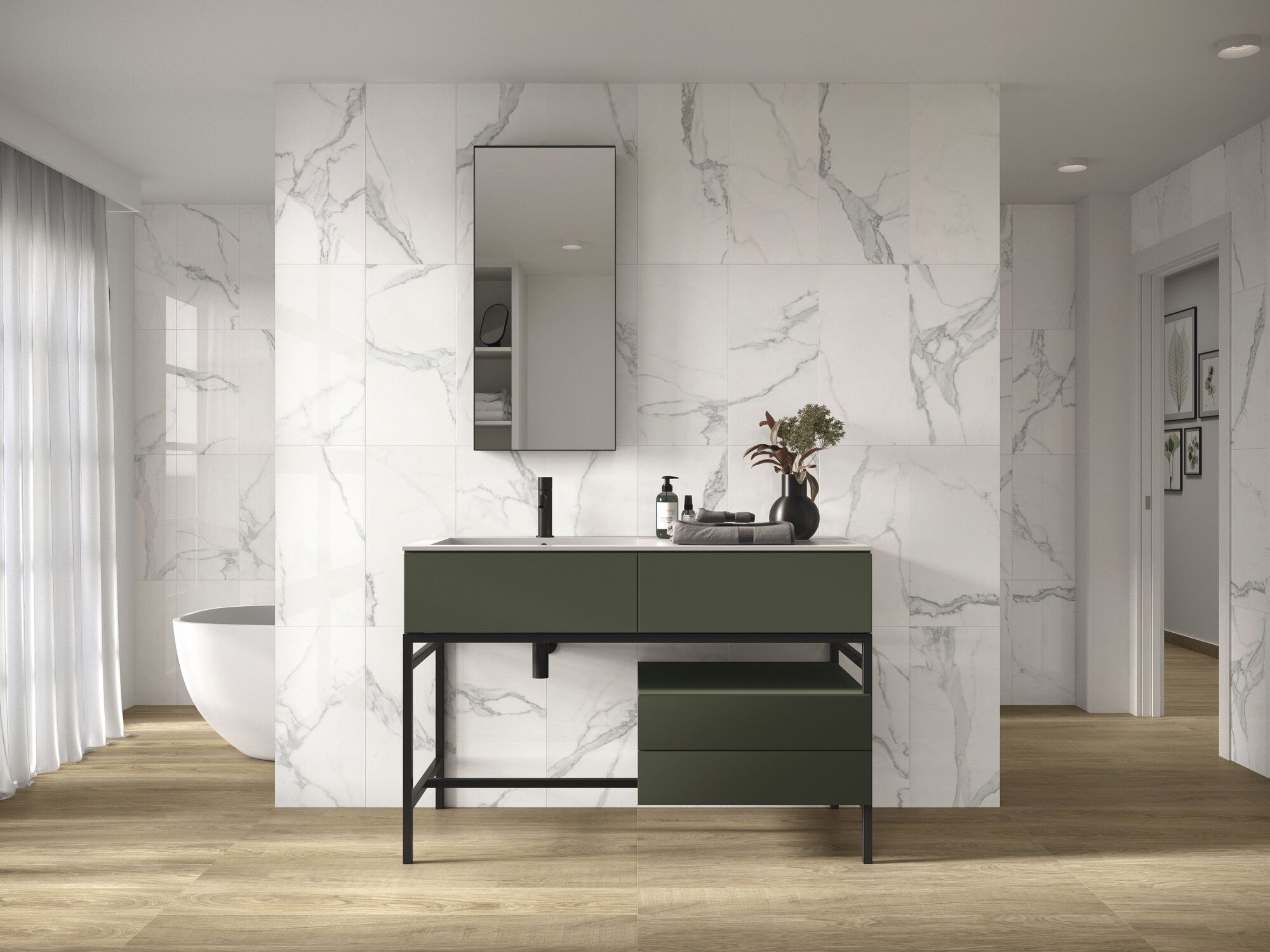 El modelo Luna Blanca es un porcelánico estilo mármol, rectificado, acabado mate natural y con una medida de 60x120cm. Su blanco puro y finas vetas, le permite combinar perfectamente con otros mármoles y materiales. Consigue dar un estilo versátil y luminoso en cualquier ambiente.