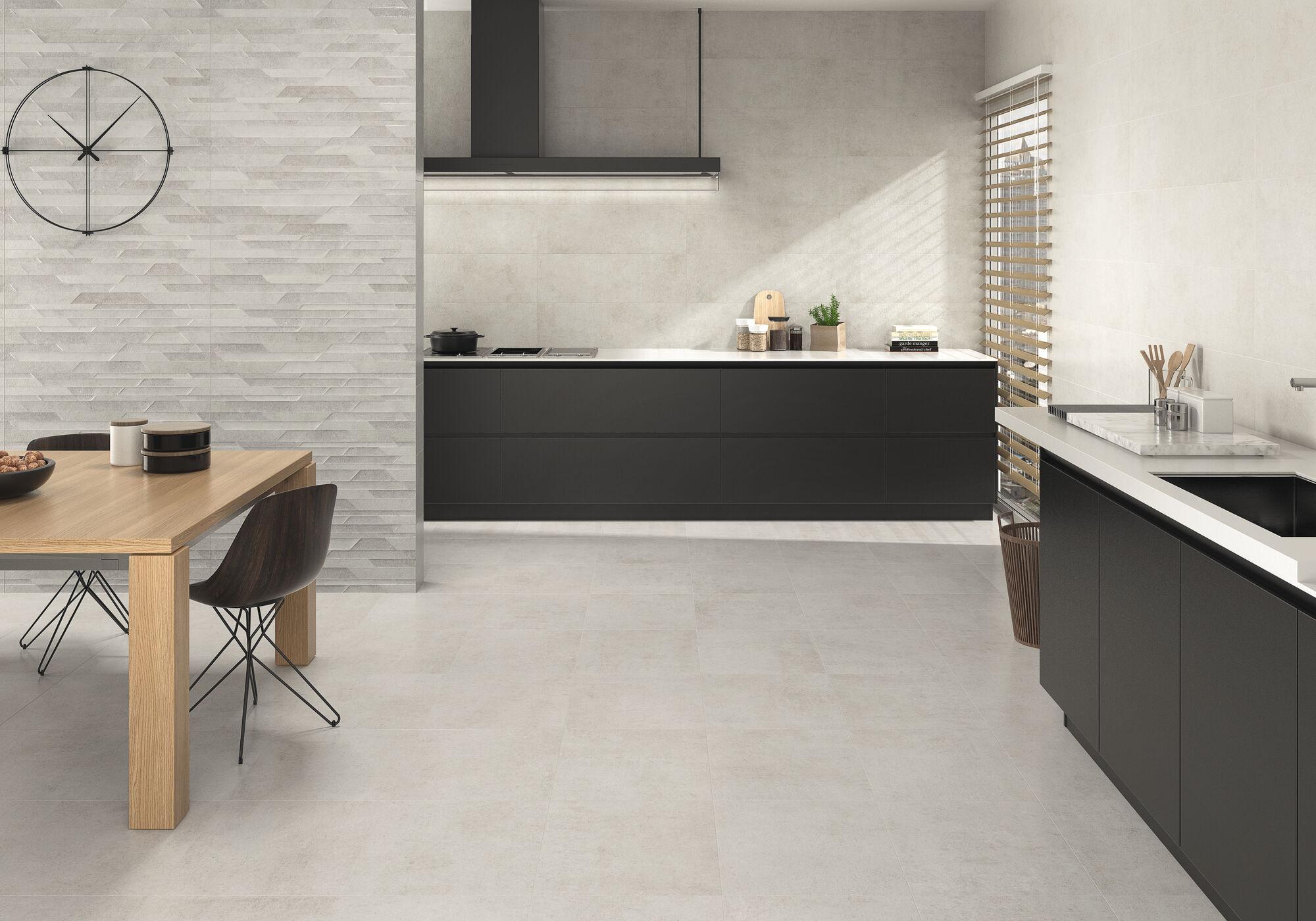 La serie Trail Jet rectificado es un azulejo de estilo minimalista, rectificado, fabricado en pasta blanca y acabado mate de 30x90cm. Su tono neutro similar al hueso, lo hace versátil y fácil de combinar con otros elementos de diseño. El acabado mate agrega una sensación de sofisticación y modernidad al azulejo, al tiempo que reduce los reflejos y las huellas, lo que lo hace ideal para la cocina. Este azulejo ofrece una cobertura generosa para las paredes, lo que resulta en menos juntas visibles y una apariencia más uniforme. En conjunto, este azulejo proporciona un diseño contemporáneo y elegante para la cocina, combinando estilo y practicidad para crear un espacio acogedor y funcional.